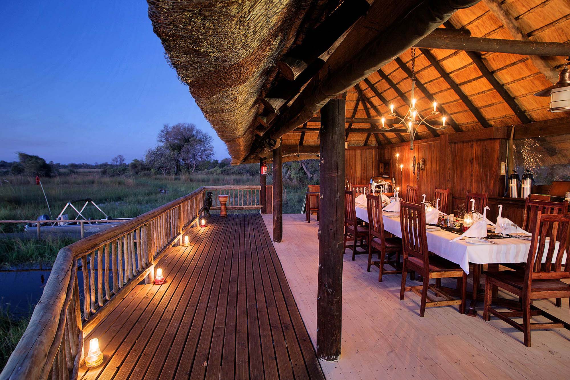 Depart Maun Airport by light aircraft to Gunn’s airstrip on a 20-minute flight over the south-western Delta, taking in the magnificence of the winding, papyrus fringed channels that make up one of the world’s greatest wet land wonders. You will be able to see some of Africa's most celebrated animals from a bird's eye view. On arrival at the private airstrip on Ntswi Island, deep in the delta, you will be met by welcoming hosts and shown to the Camp. (D)