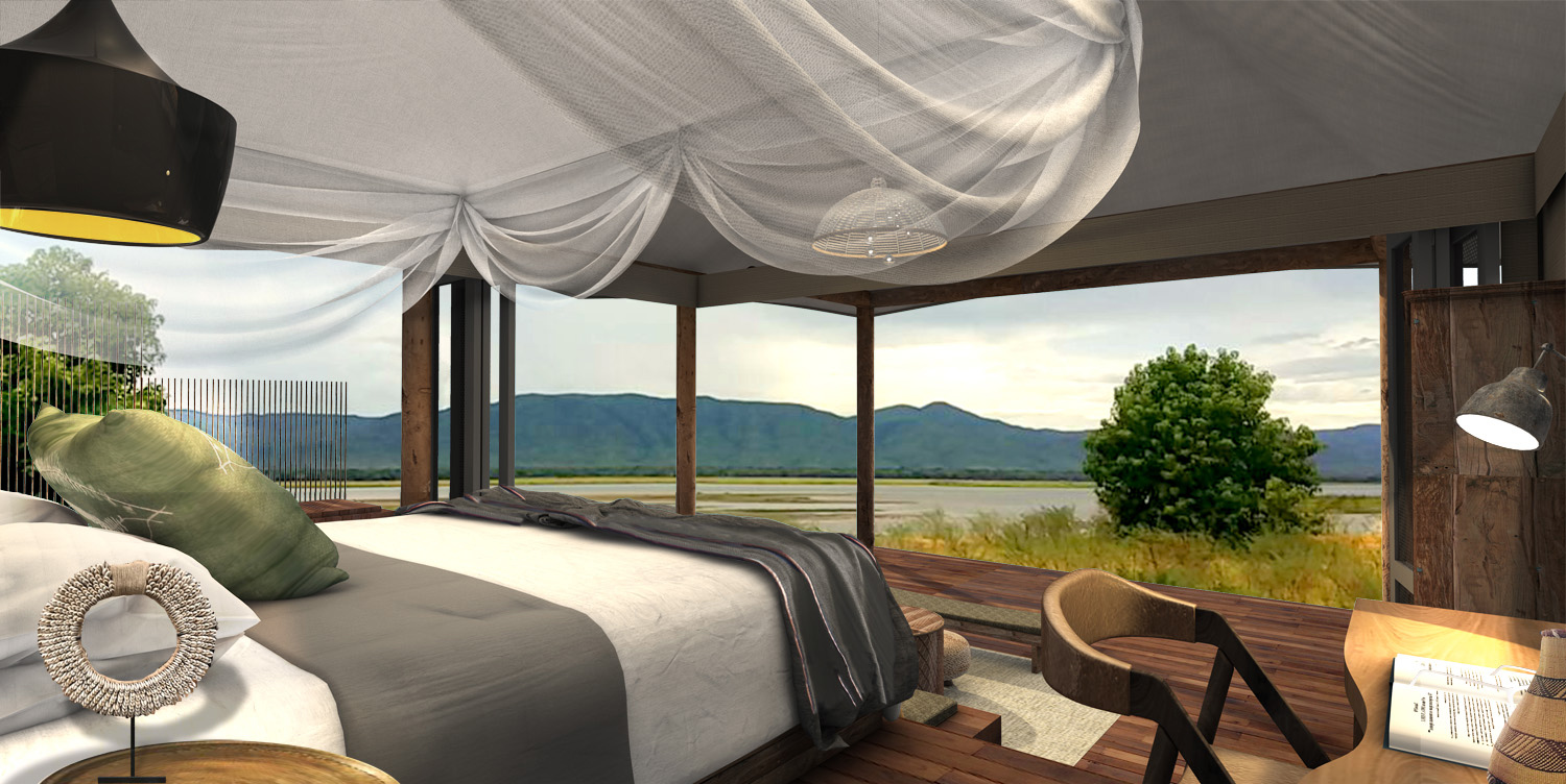 Consisting of six luxury tented suites with uninterrupted views of the river and escarpment beyond, the camp inspires a feeling of remoteness. There is an abundance of game and birds dance on the breeze. Guests are able to spend their days walking in the footsteps of ancient explorers and following the tracks of elephant. Here, visitors can watch the drama of the wild play out before their eyes on game drives and canoeing safaris and marvel at the incredible sights and sounds of one of Africa’s last remaining wild frontiers.