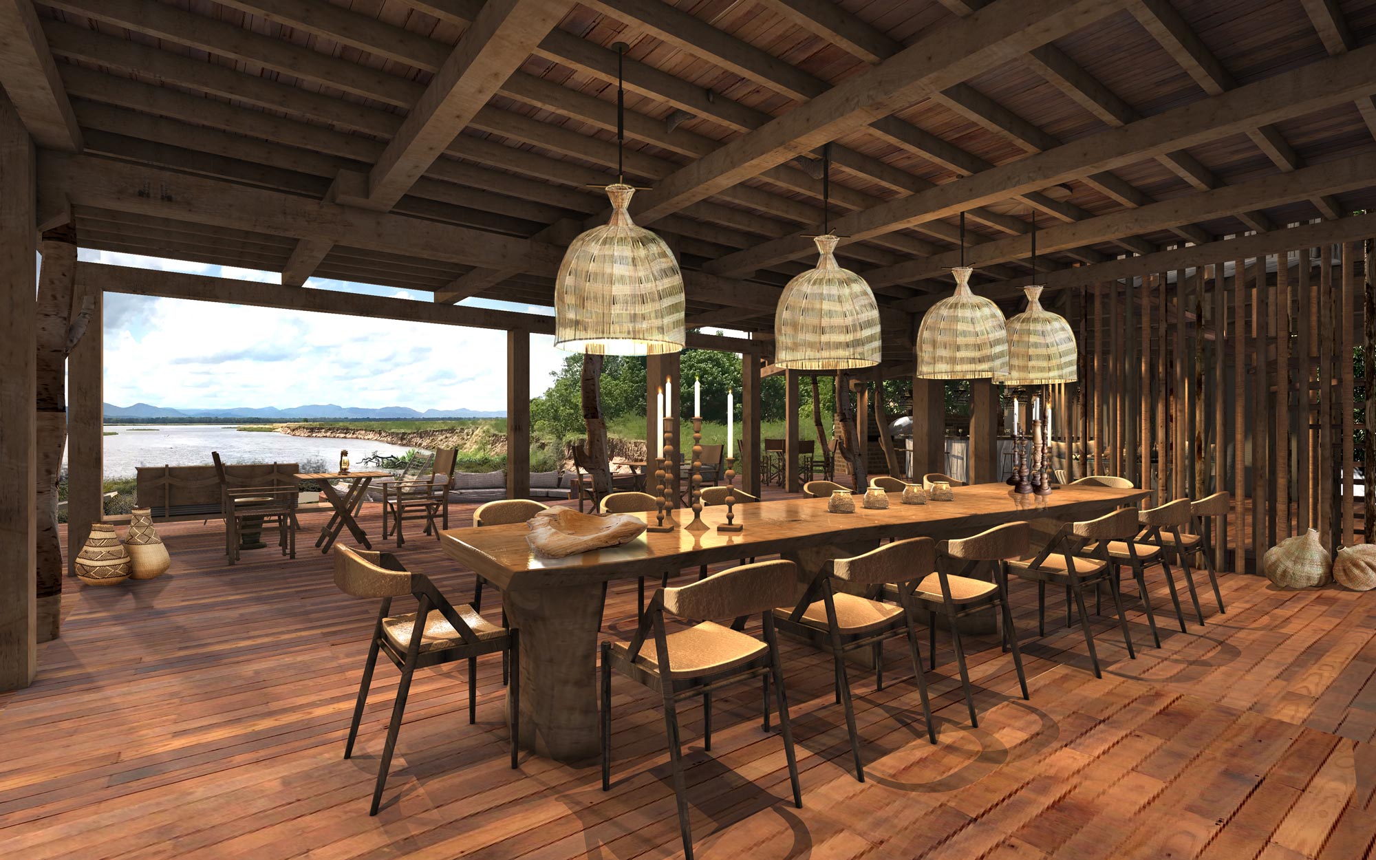 Set in one of the wildest and most remote parts of Africa, on the banks of one of the oldest rivers in the world, Nyamatusi allows guests to experience an authentic view of the old untouched Africa. Inspired by the traditional custodians of the land who respected the river as the source of life, the design of the camp subtly incorporates the element of water and pays homage to the astounding beauty of the mighty Zambezi River.